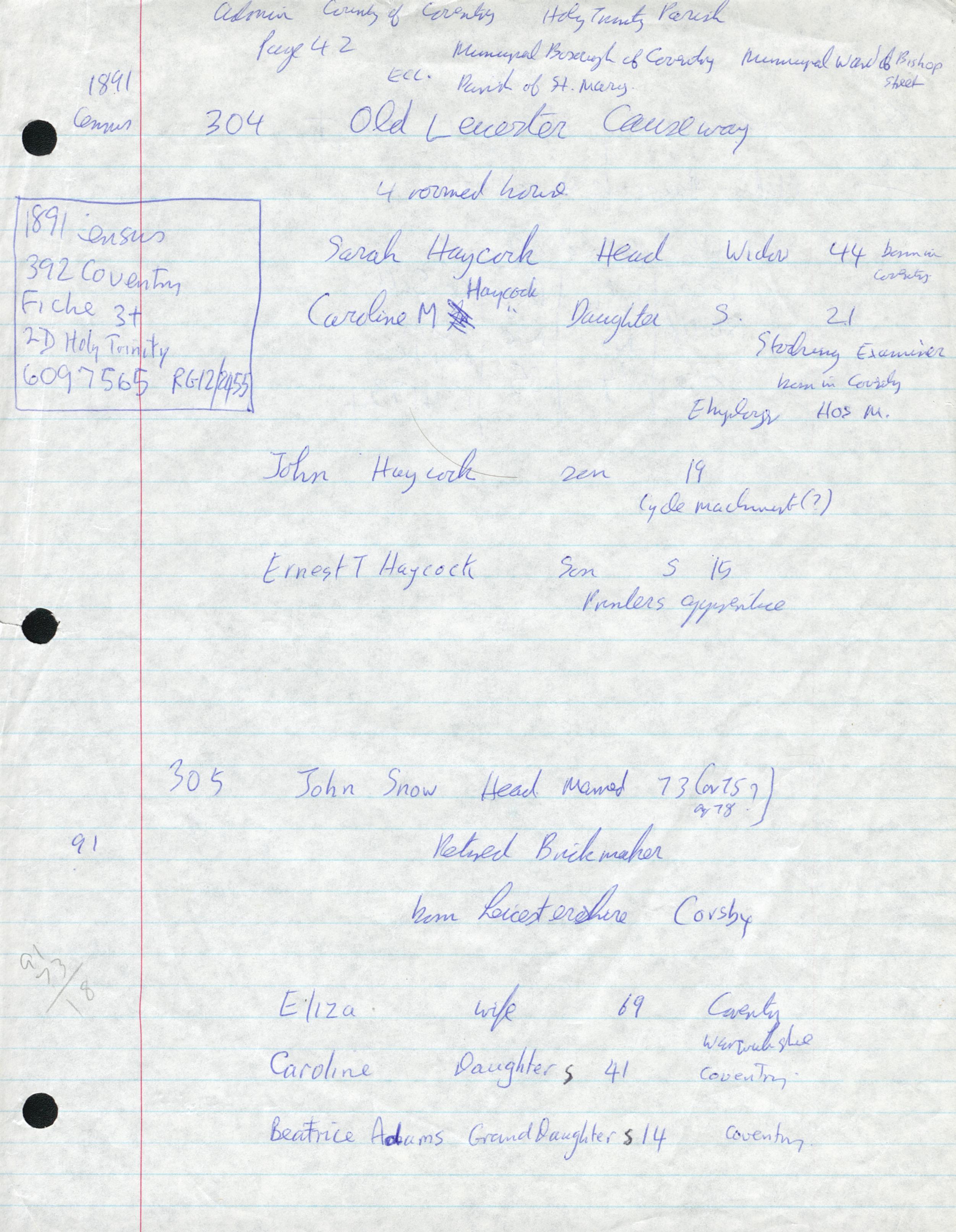 1891 Census - Notes